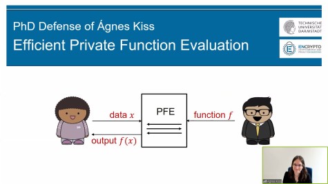 On Fri., 25th September 2020, Ágnes Kiss successfully defended her dissertation “Efficient Private Function Evaluation” in an online video conference. Congratulations!