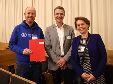 The certificate was handed over to Prof. Dr.-Ing. Thomas Schneider by Prof. Dr. Heribert Warzecha (Vice President, Academic Affairs and Diversity) and Dr. Annette Glathe (Head of Unit “University Teaching and Learning Development") during the Day of Teaching 2023.