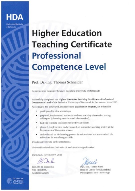 Thomas Schneider successfully completed the Higher Education Teaching Certificate – Professional Competence Level.